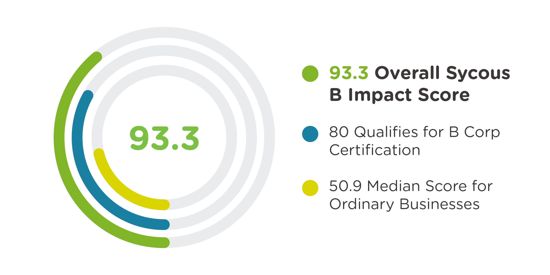 Sycous have achieved an overall B Impact score of 93.9! To certify as a B Corp, businesses must achieve a score of 80 to qualify, with the average score for ordinary businesses being around 50.9. The B Impact score takes a range of categories into account including Governance, Workers, Community, Environment and Customers, with the highest scoring Sycous categories including Workers and the Environment. Our B Impact score is just the beginning of our journey, to find out more information our B Impact score click here to view our B Corp profile.
